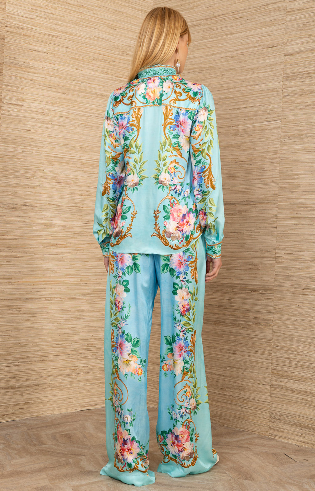 Hand wash cold, hang dry. Iron on reverse side