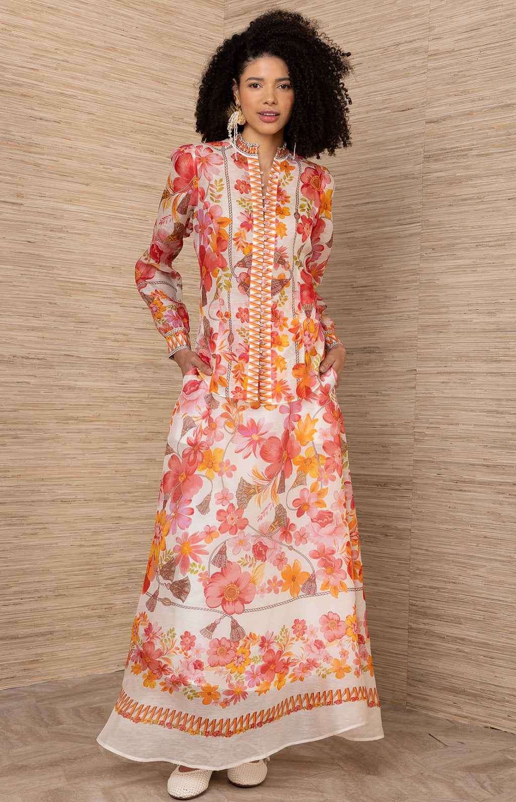 This long-sleeve top is made from airy silk organza and designed with an allover floral print and intricate trim detailing. A softly structured shape creates an elevated yet easy look. Pairs perfectly with our Quitterie linen organza skirt.